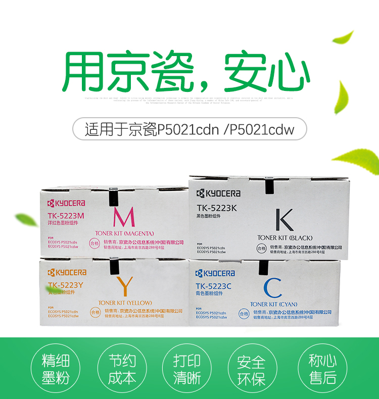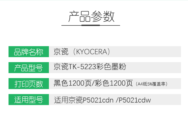 • 商品名稱:京瓷(KYOCERA)TK-5223C 青色墨粉/墨盒(低容) P5021cdn/P5021cdw墨粉盒
