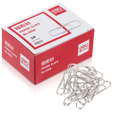 • 得力(deli)3#金屬回形針 鍍鎳防銹曲別針 100枚/盒 0018