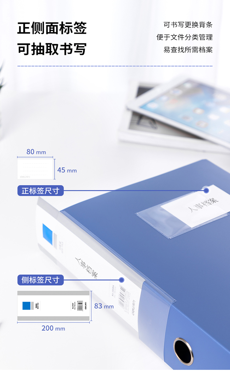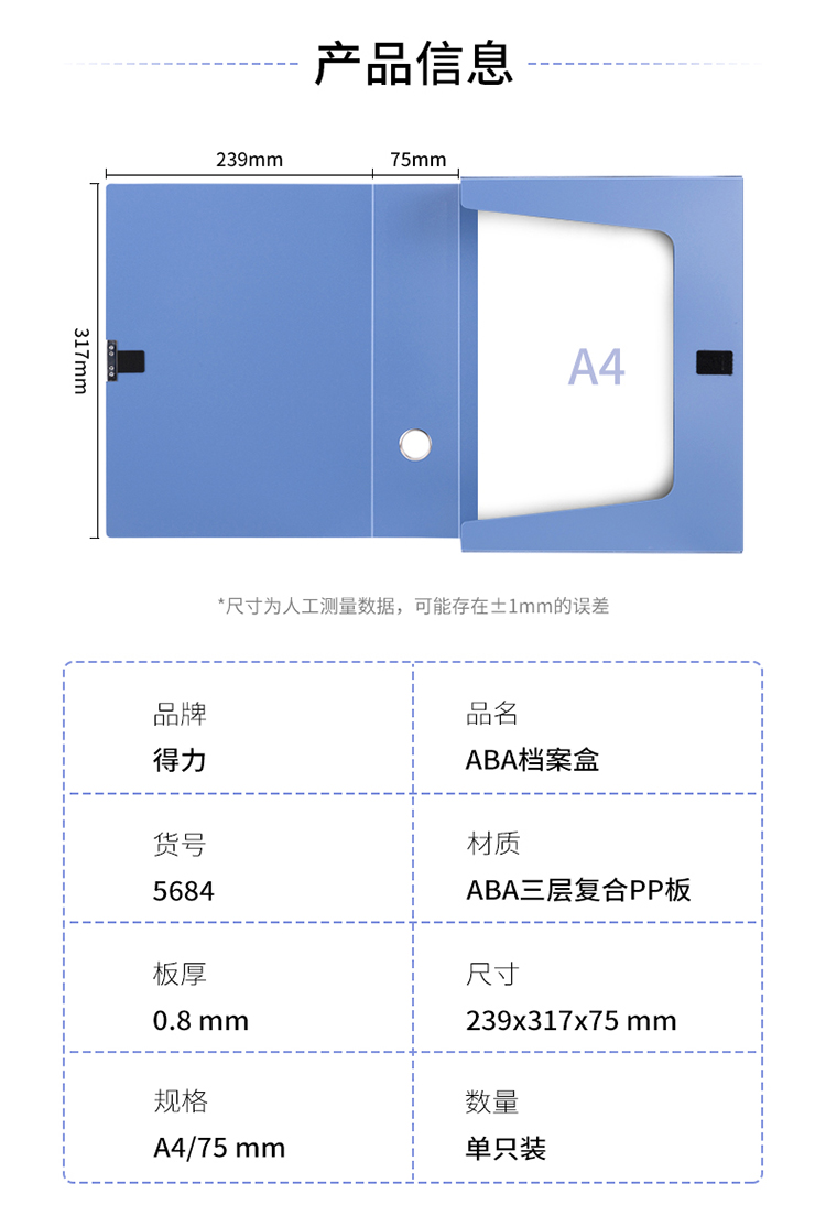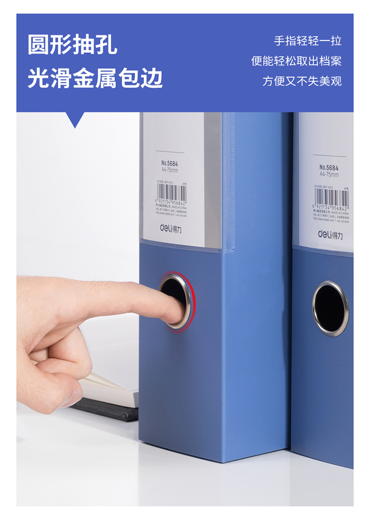 • 商品名稱:得力(deli) 5684 ABA系列A4/75mm檔案盒 藍(lán)色 單只裝