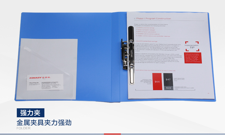 • 金得利(KINARY) AF603 A4單強(qiáng)力長(zhǎng)押文件夾 藍(lán)色