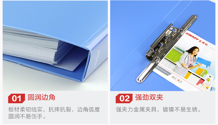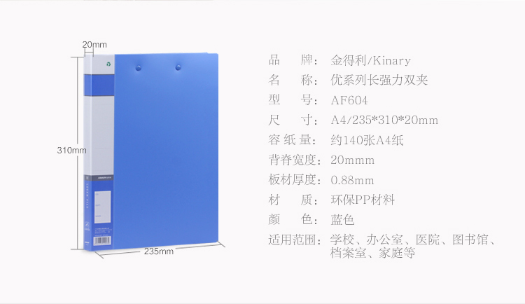 • 商品名稱:金得利(KINARY) AF604 A4文件夾長強力夾+板夾 藍色