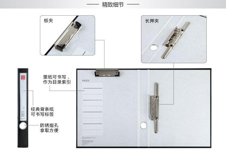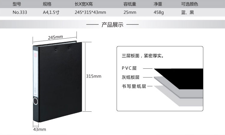 • 商品名稱:齊心(Comix) NO.333 A4 1.5寸背寬,雙夾,藍(lán)色/黑色
