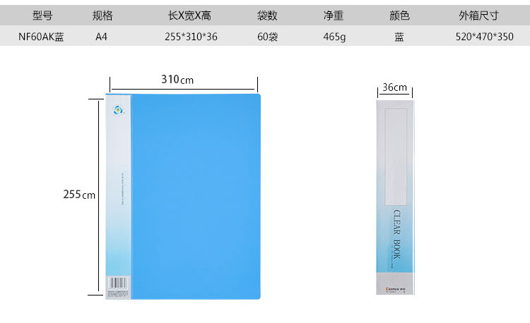 • 商品名稱:齊心(Comix) NF60AK 60頁資料冊/文件冊A4 藍色