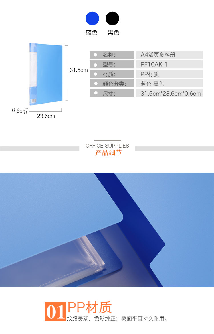 • 商品名稱:齊心(Comix) PF10AK 10頁A4資料冊/文件冊 黑色