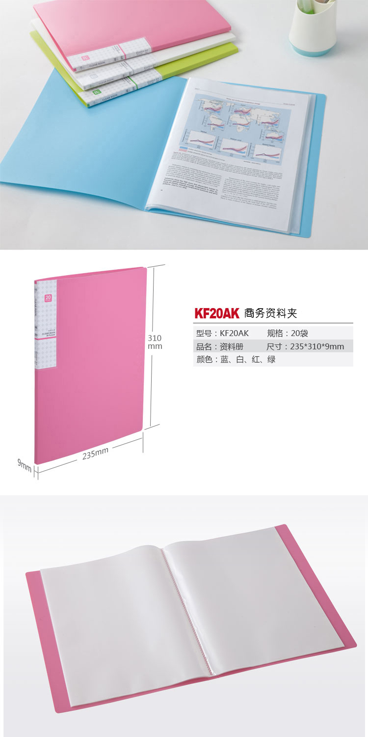 • 商品名稱:無插紙資料冊 齊心(Comix) VF10AK 資料冊,A4,10袋
