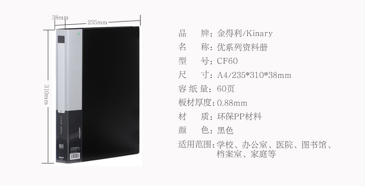 • 商品名稱:優(yōu)系列資料冊 金得利(KINARY) #CF60 A4 60頁 黑色