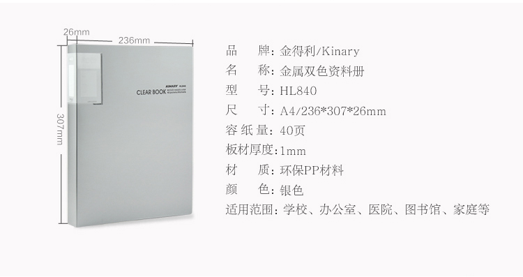 • 金得利金屬雙色資料冊 金得利 HL840 A4 40頁