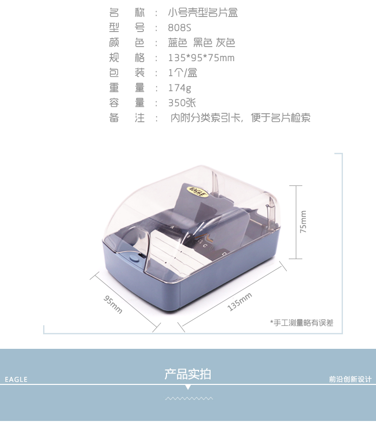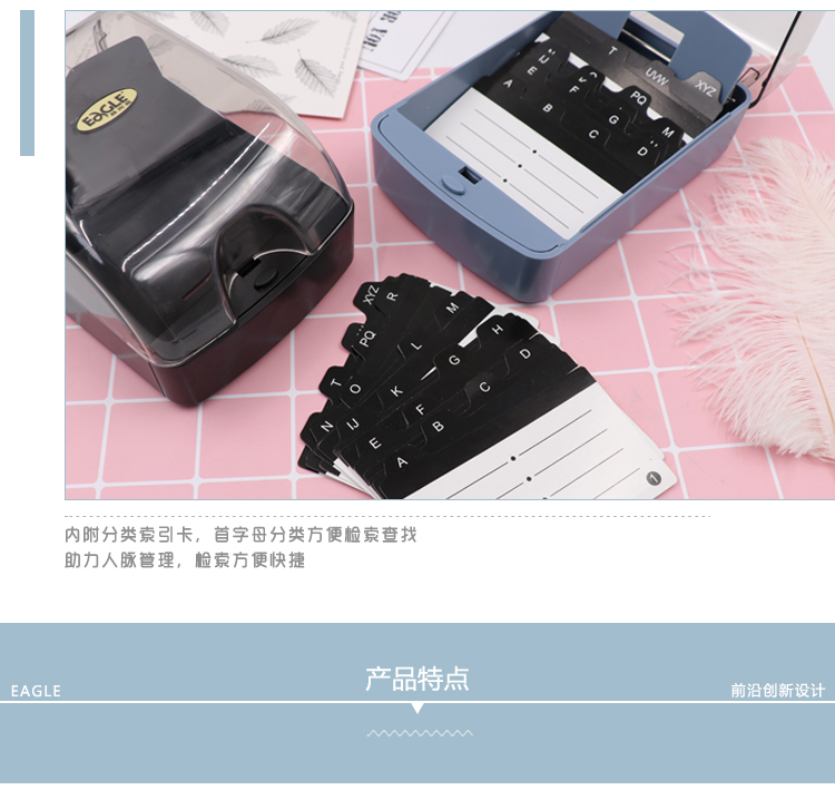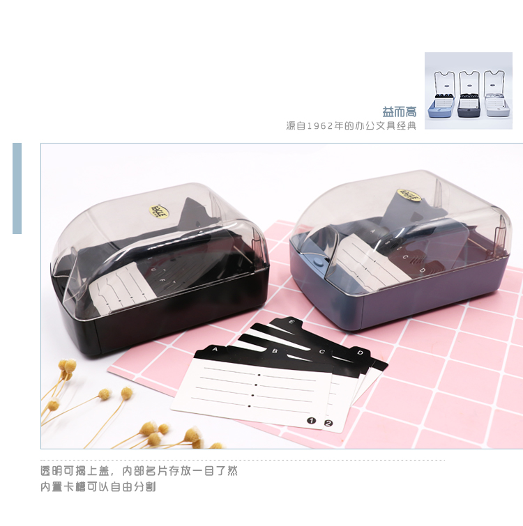• 商品名稱:益而高(EaGLE)大容量名片盒 透明翻蓋收納盒整理盒名片座創(chuàng)意名片夾 A-Z字母索引 約裝350張 808S 黑色
