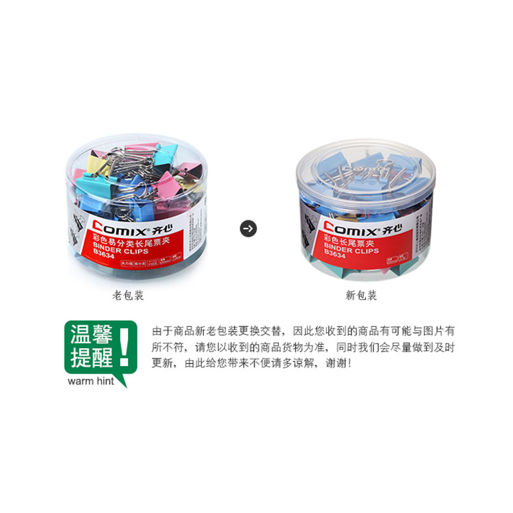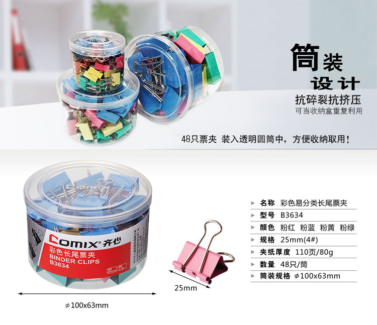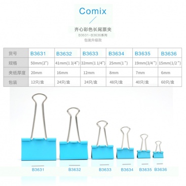 • 商品名稱:齊心(COMIX)48只25mm彩色長尾夾票夾金屬票據(jù)夾燕尾夾鐵夾子辦公 中號 B3634