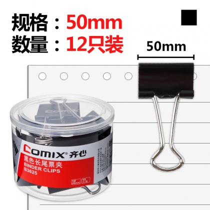 • :齊心(COMIX) 12只50mm黑色長尾票夾 金屬票據(jù)夾燕尾夾鐵夾子 大號 B3625