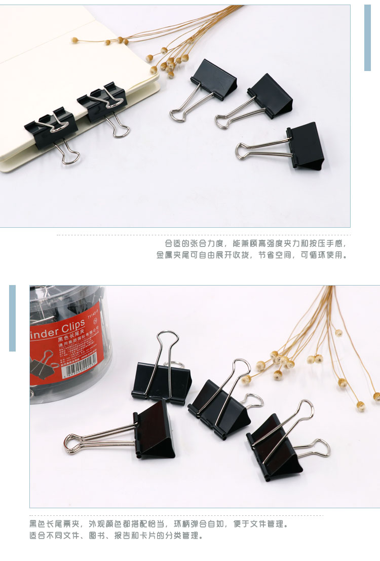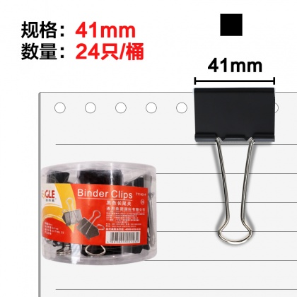 • 益而高(EAGLE)24只裝41mm黑色長(zhǎng)尾夾 中號(hào)燕尾夾子金屬文件夾票據(jù)夾辦公文具 1桶裝 TY143-P