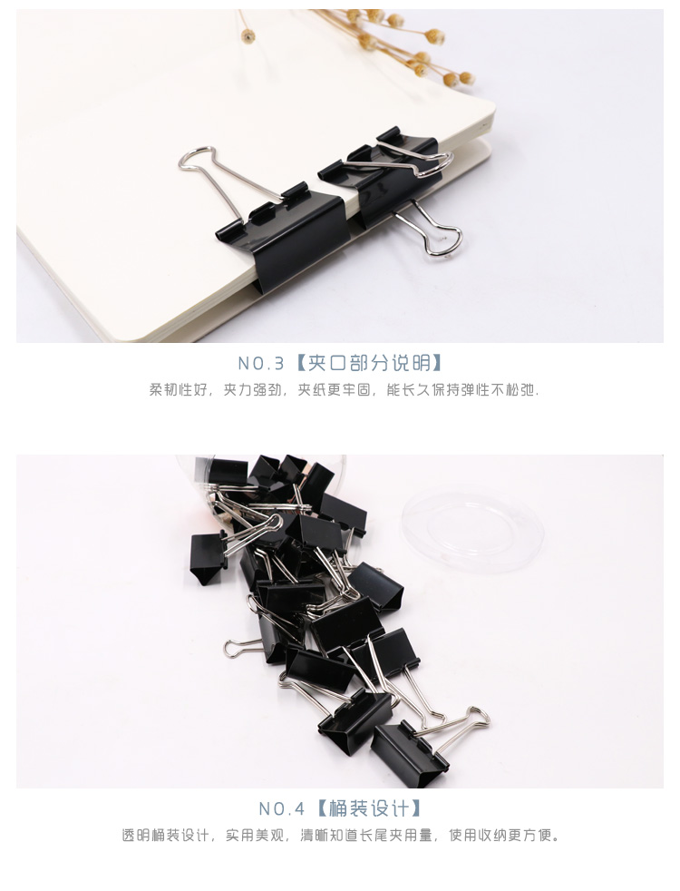 • 商品名稱(chēng):益而高(EAGLE)24只裝41mm黑色長(zhǎng)尾夾 中號(hào)燕尾夾子金屬文件夾票據(jù)夾辦公文具 1桶裝 TY143-P