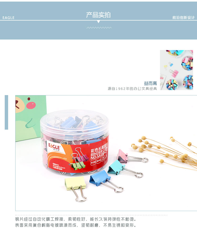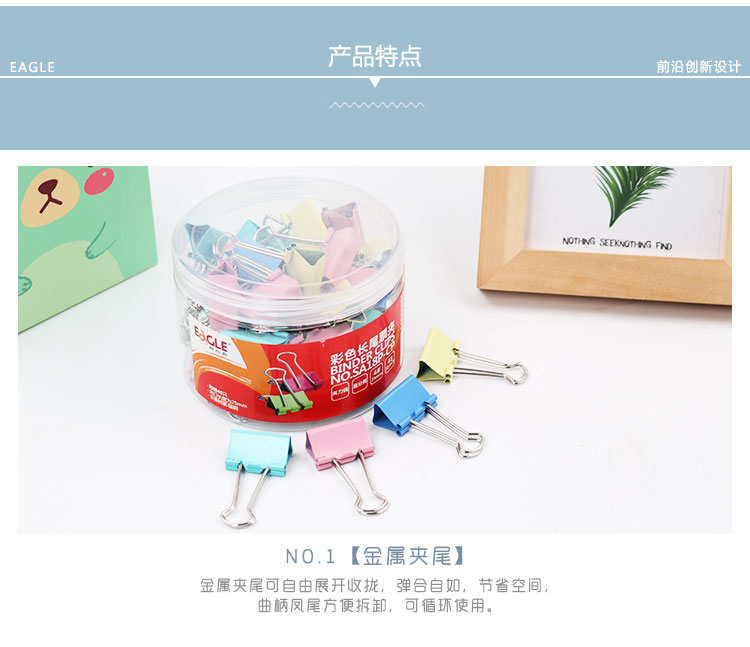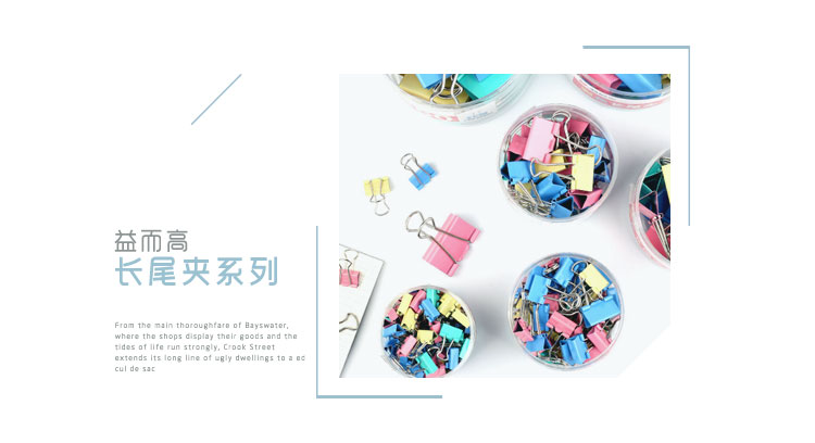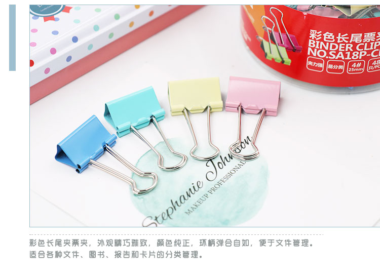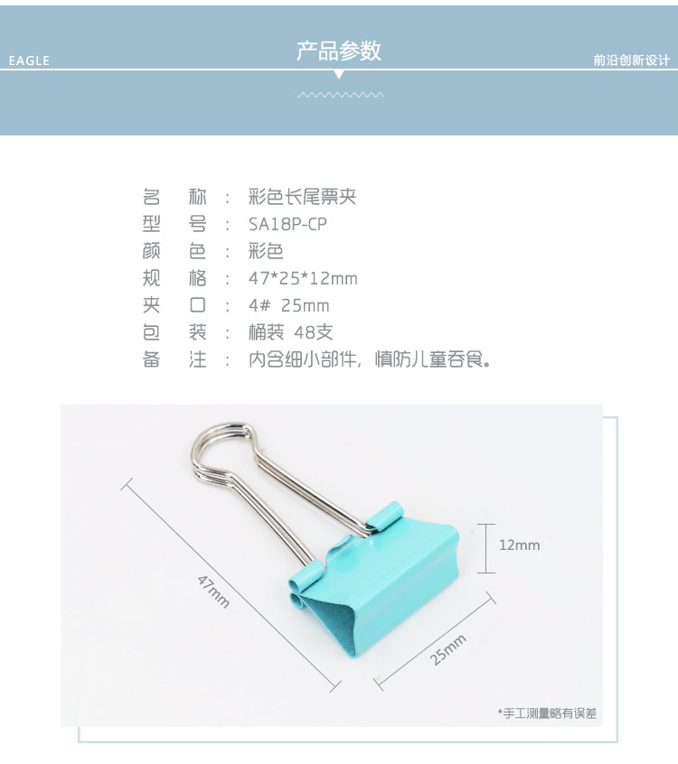 • 商品名稱:益而高(EAGLE)48只裝25mm彩色長尾夾 中號(hào)燕尾夾子金屬文件夾票據(jù)夾辦公文具 1桶裝 SA18P-CP
