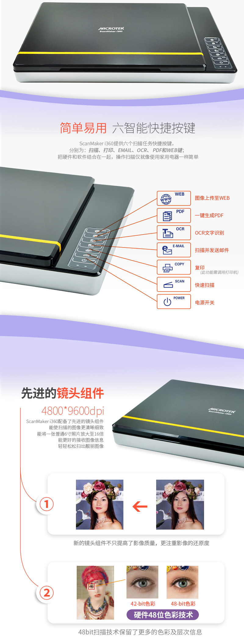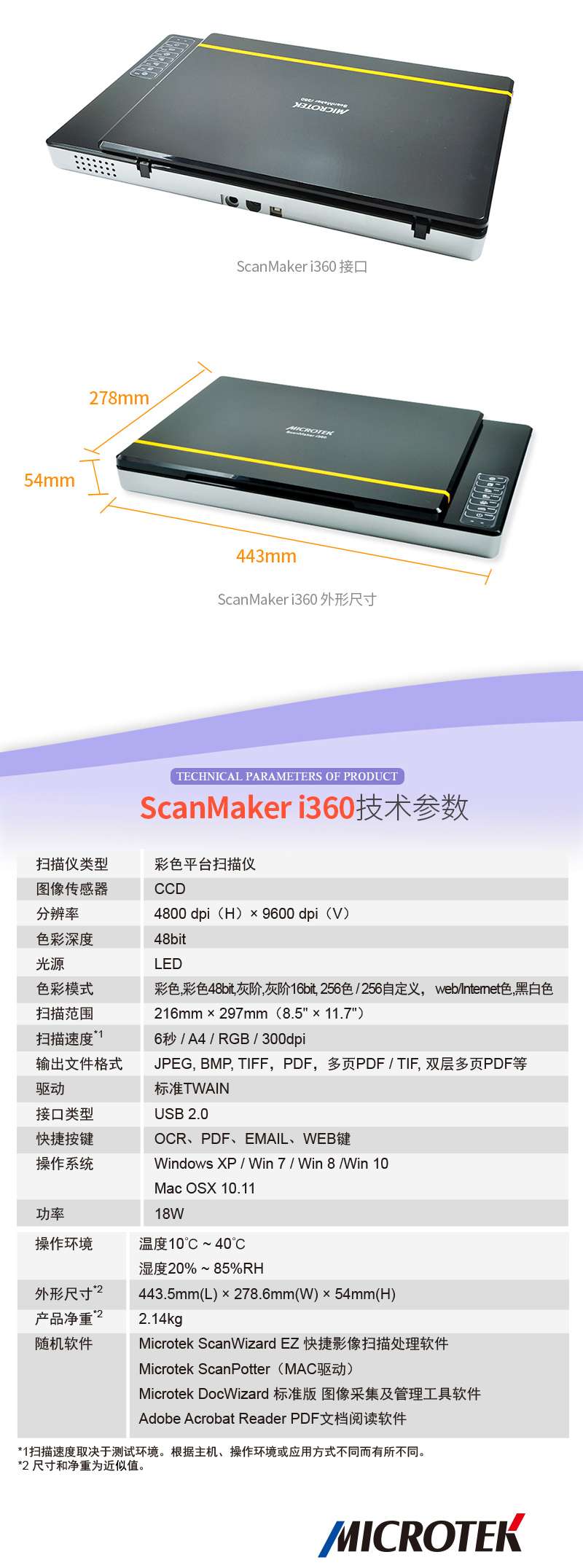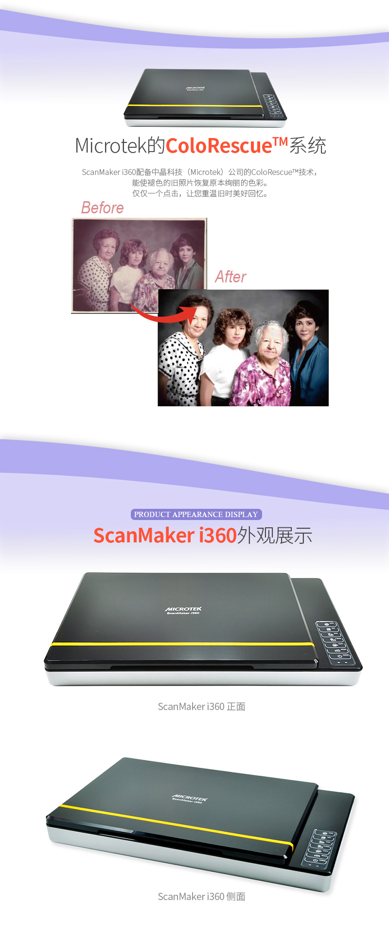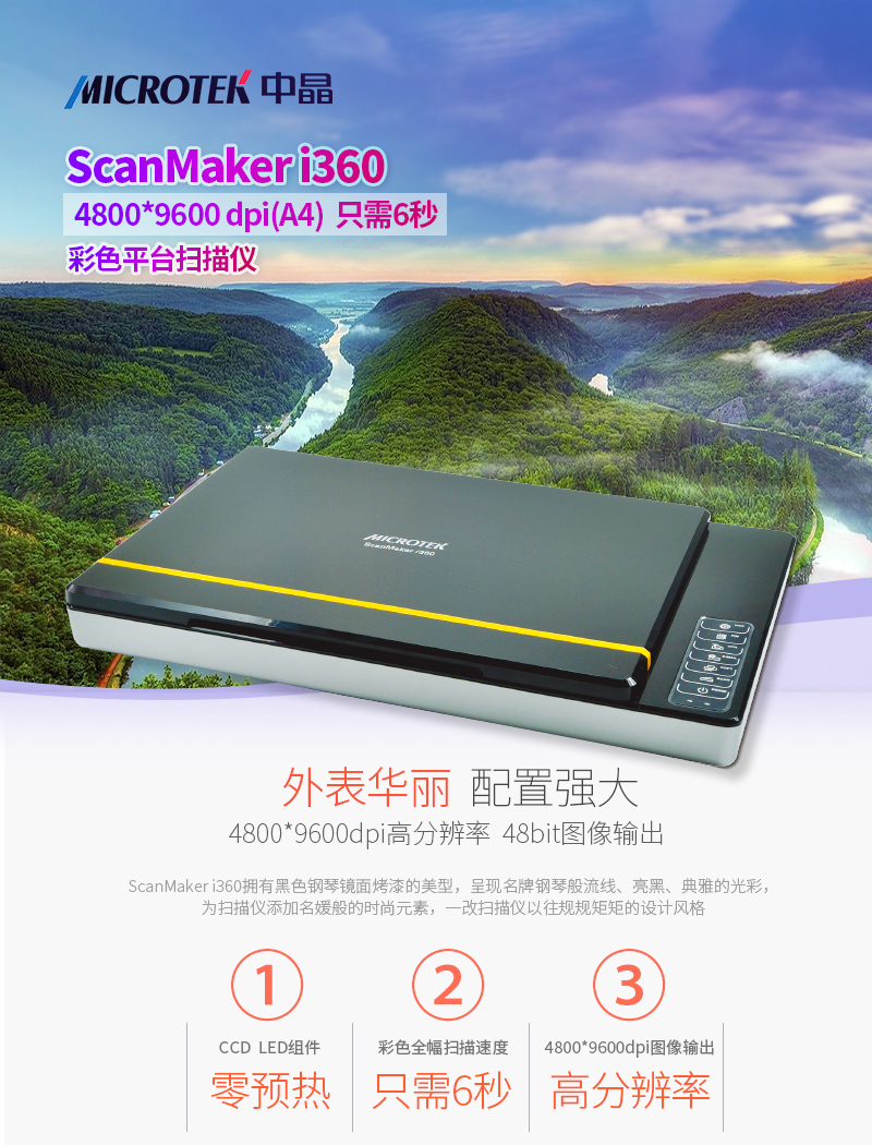 • 商品名稱:MICROTEK ScanMaker i360 中晶平板式A4輕薄高速掃描儀高清家用文檔