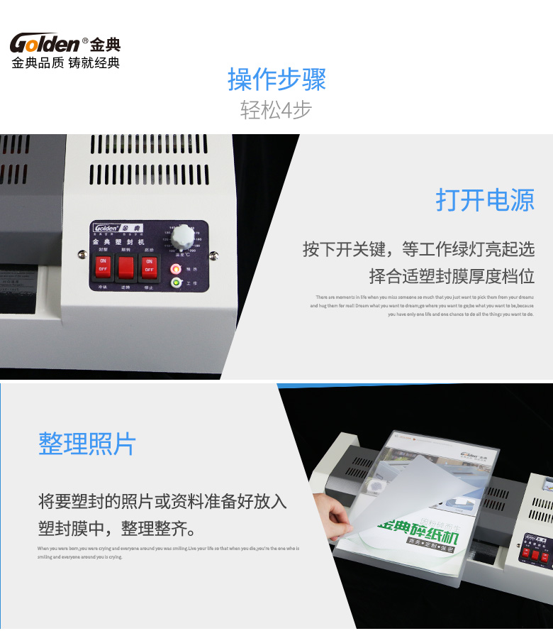 • 商品名稱:金典(Golden)GD-320塑封機(jī)電動(dòng)過(guò)塑機(jī)冷裱/熱裱覆膜機(jī)過(guò)膜過(guò)膠機(jī)封裝機(jī)