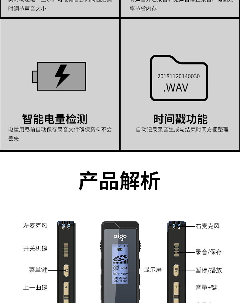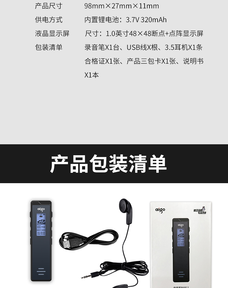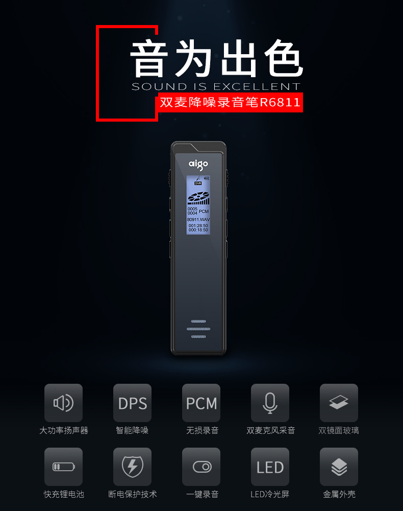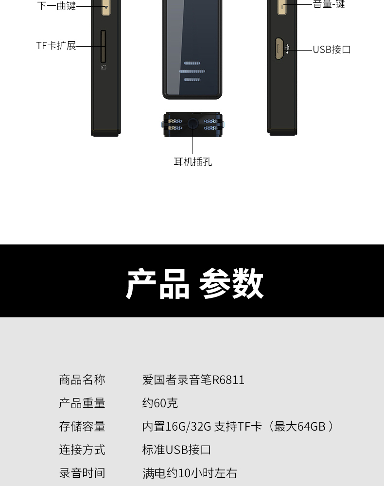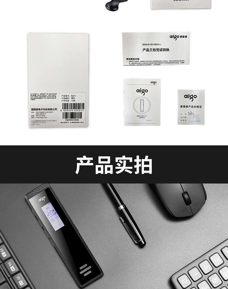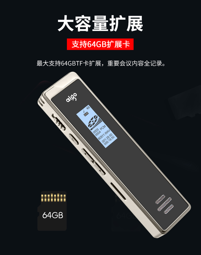 • 商品名稱:愛(ài)國(guó)者(aigo)錄音筆 R6811 16G 一鍵錄音 TF卡擴(kuò)容 智能專業(yè)微型高清降噪錄音器 學(xué)習(xí)會(huì)議培訓(xùn)采訪 炫黑