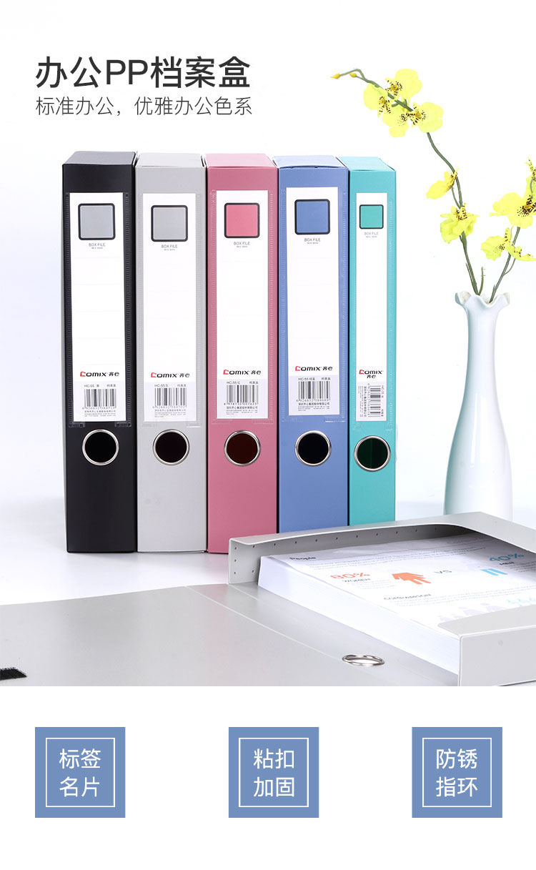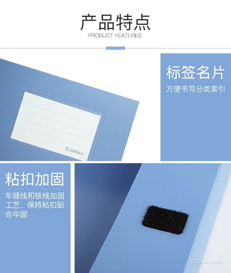 • 齊心(Comix) 55mm加厚型粘扣檔案盒/A4文件盒/資料盒 HC-55 藍(lán)色