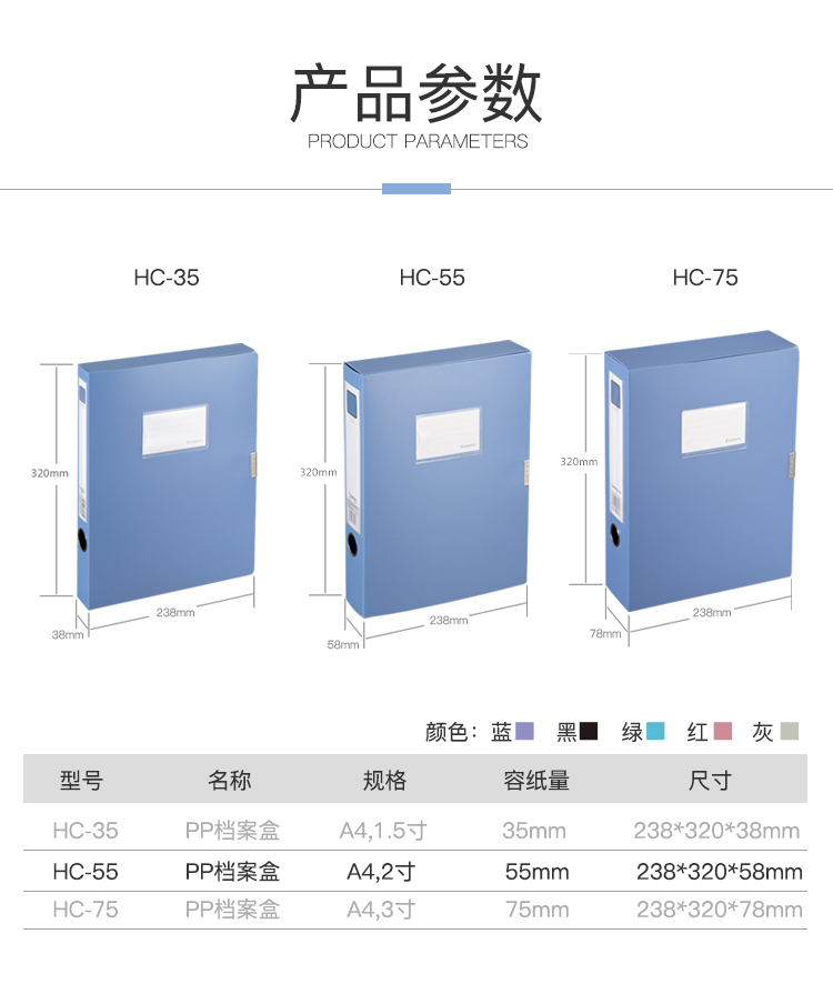 • 商品名稱:齊心(Comix) 55mm加厚型粘扣檔案盒/A4文件盒/資料盒 HC-55 藍(lán)色