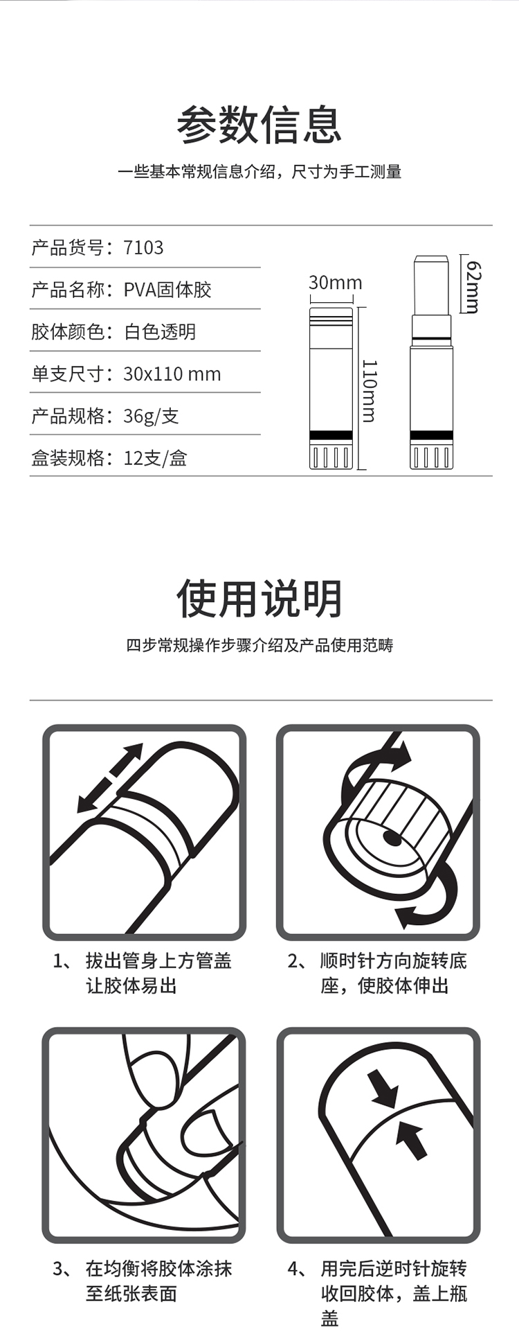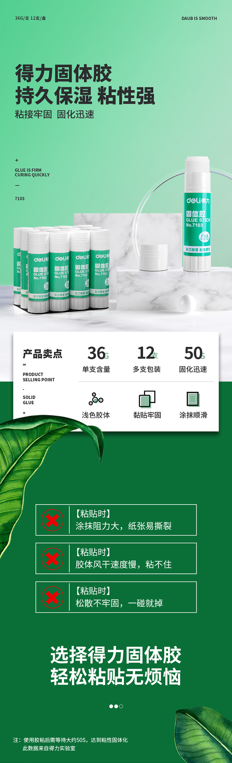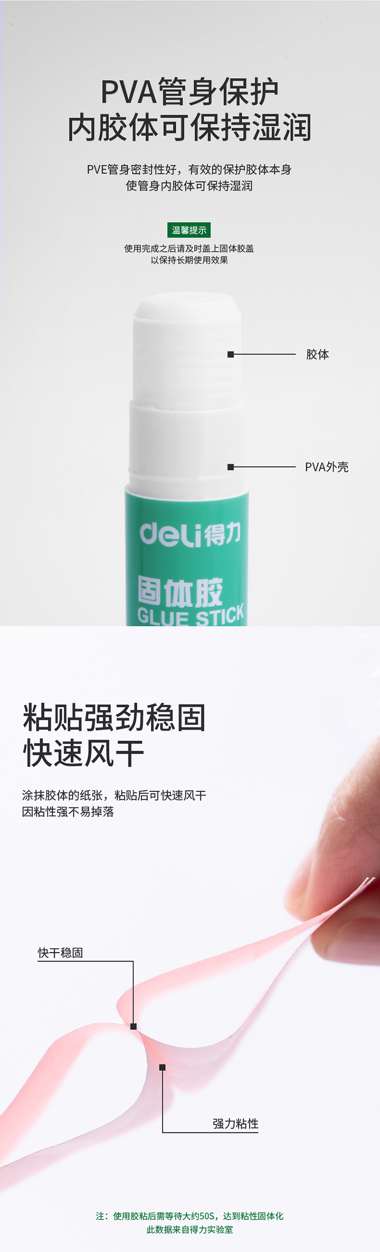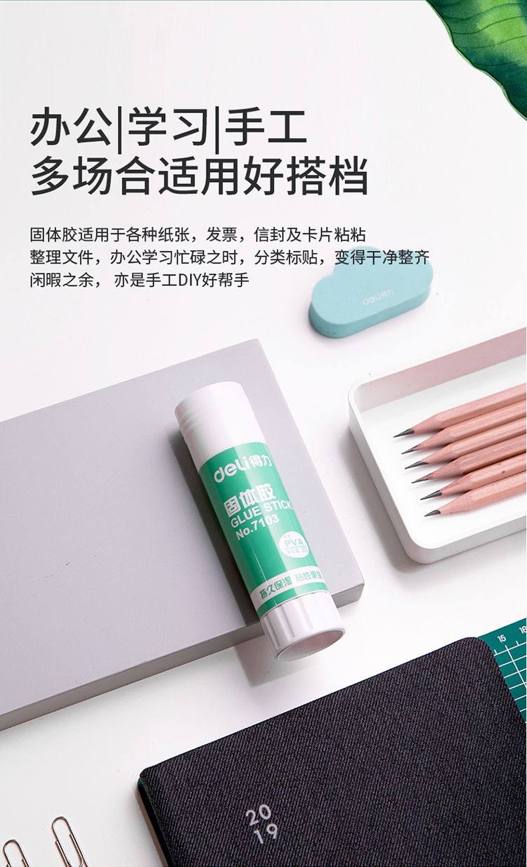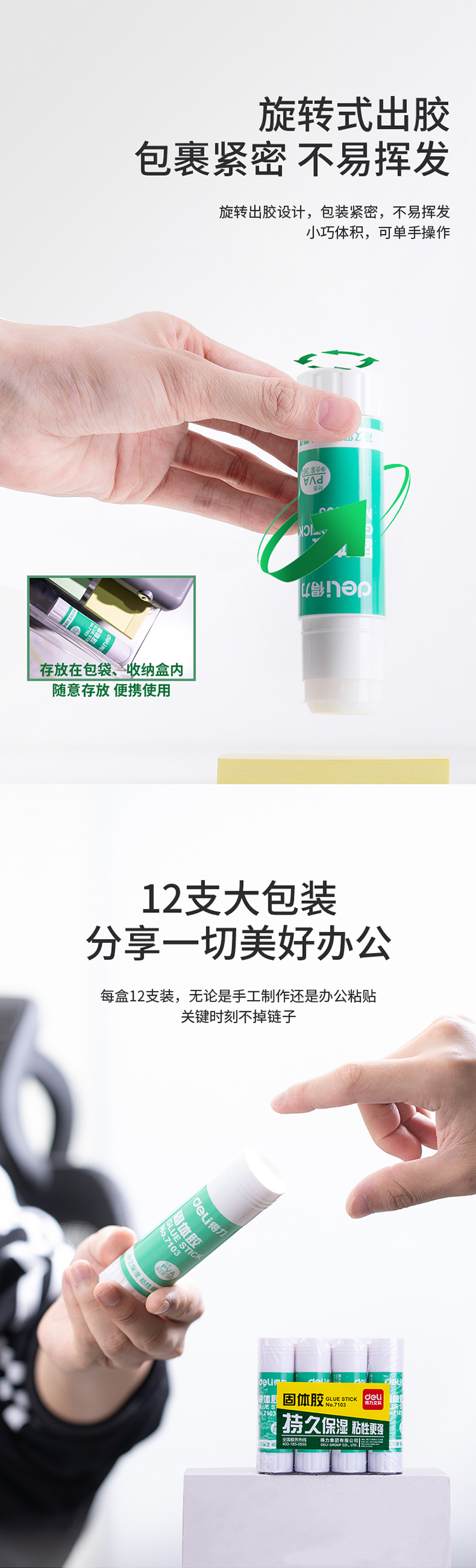 • 商品名稱:得力(deli)36g高粘度PVA固體膠水/膠棒 12支/盒 辦公用品 7103