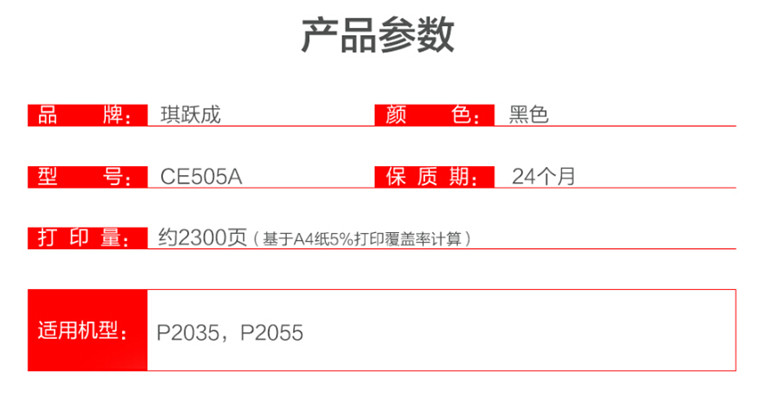 • 商品名稱:琪躍成(QYC)惠普505AXC版黑色硒鼓 (適用于HP P2035/2055/2055X/CanonLB