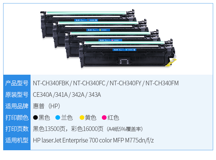 • 格之格CE342A硒鼓NT-CH342FY適用惠普700 MFP M775dn M775df M775dz打印機(jī)粉盒 hp342a黃色大容量硒鼓