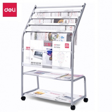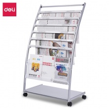 • 得力(deli)五層鋁合金夾條報紙架報刊架 圖書館報夾條置 宣傳資料雜志展示架 高1.05米9304