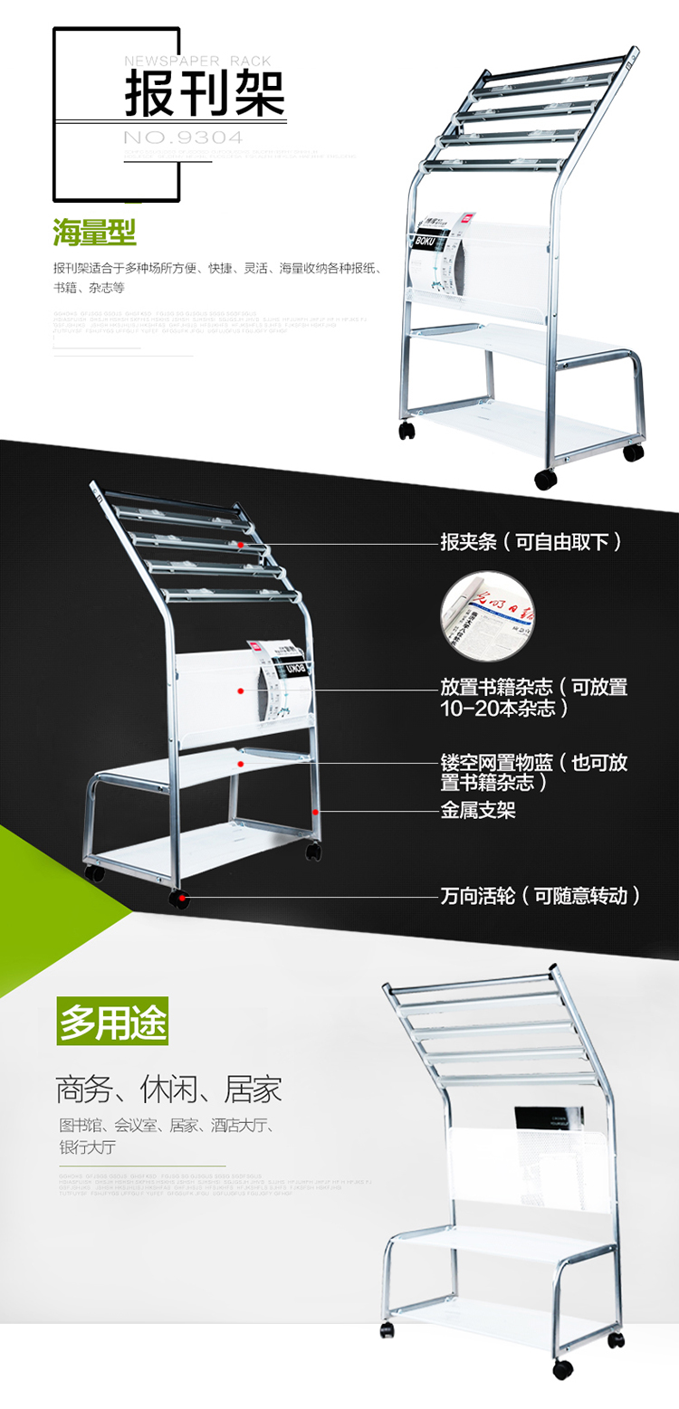 • 商品名稱:得力(deli)五層鋁合金夾條報紙架報刊架 圖書館報夾條置 宣傳資料雜志展示架 高1.05米9304