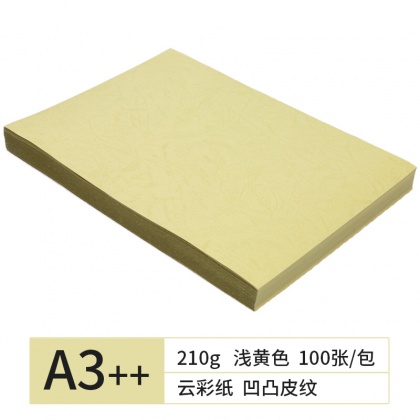 • 商品名稱:天章(TANGO)A3++凹凸皮紋紙/壓紋紙/封面紙/云彩紙/封皮紙 彩色卡紙標(biāo)書封面 淺黃色210g 100張/包