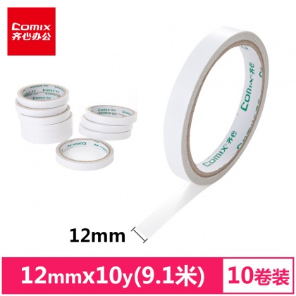 • 商品名稱:齊心(Comix) 雙面膠帶高粘性棉紙雙面膠易撕易貼 白色12mm*10y 辦公用品 MJ1210-10