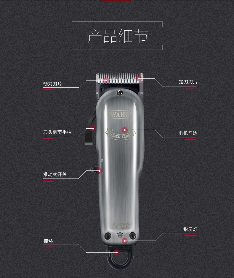 • 華爾(WAHL)理發(fā)器電推剪 專業(yè)發(fā)廊電推子理發(fā)師剃頭刀電動充電理發(fā)剪8591-018