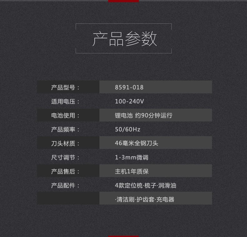 • 商品名稱:華爾(WAHL)理發(fā)器電推剪 專業(yè)發(fā)廊電推子理發(fā)師剃頭刀電動充電理發(fā)剪8591-018