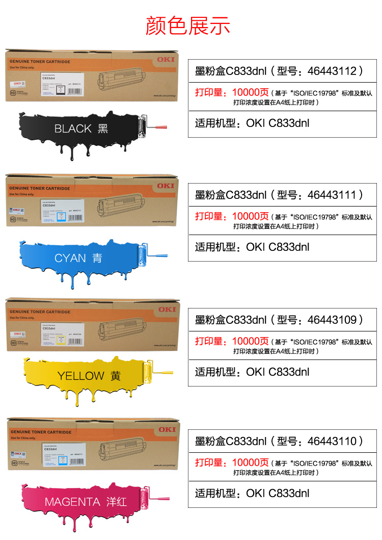 • 商品名稱(chēng):OKI C833dnl 黑色墨粉粉倉(cāng)碳粉粉盒 原裝打印機(jī)耗材10000頁(yè)