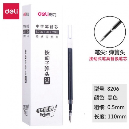 • 商品名稱:得力(deli) 按動中性筆簽字筆水筆黑色碳素筆學(xué)生辦公用品 0.5mm 筆芯黑色/1盒 S206