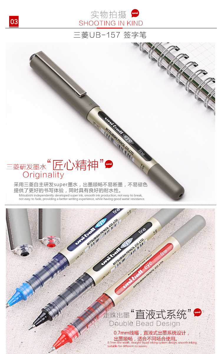• 商品名稱:三菱(Uni)直液式中性筆UB-157耐水子彈頭走珠筆 黑色0.7MM