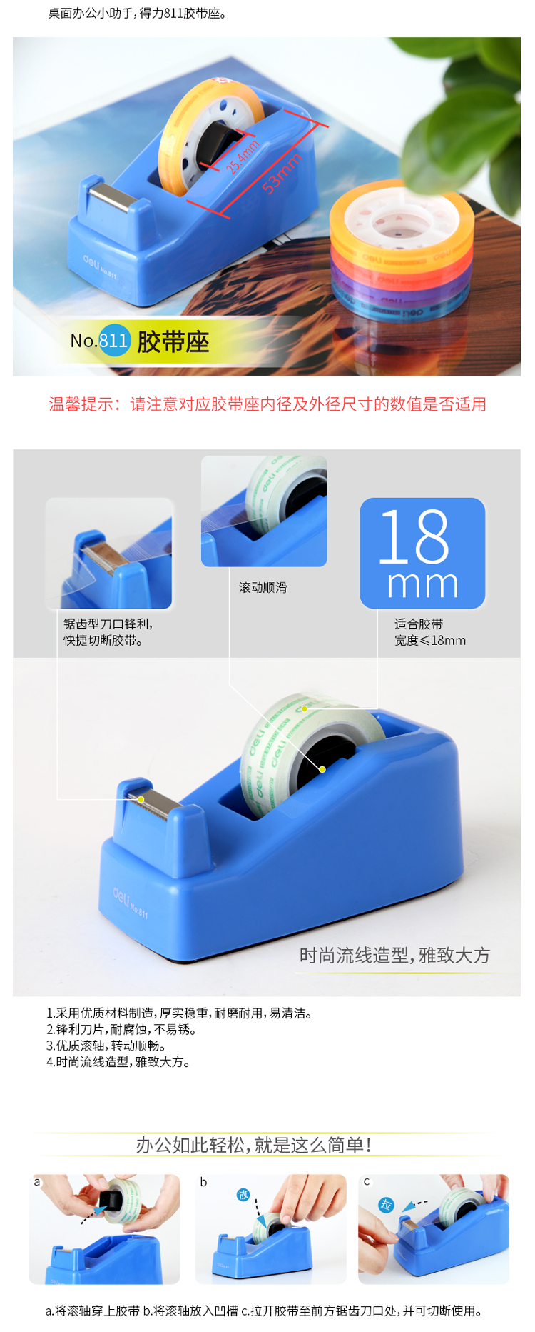 • 商品名稱:得力(deli)小號膠帶座切割器封箱器(膠帶寬度 ≤18mm) 811