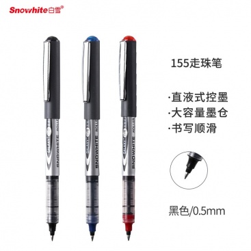 • 白雪(snowhite)直液式走珠筆子彈型0.5mm中性筆PVR-155黑色 12支/盒