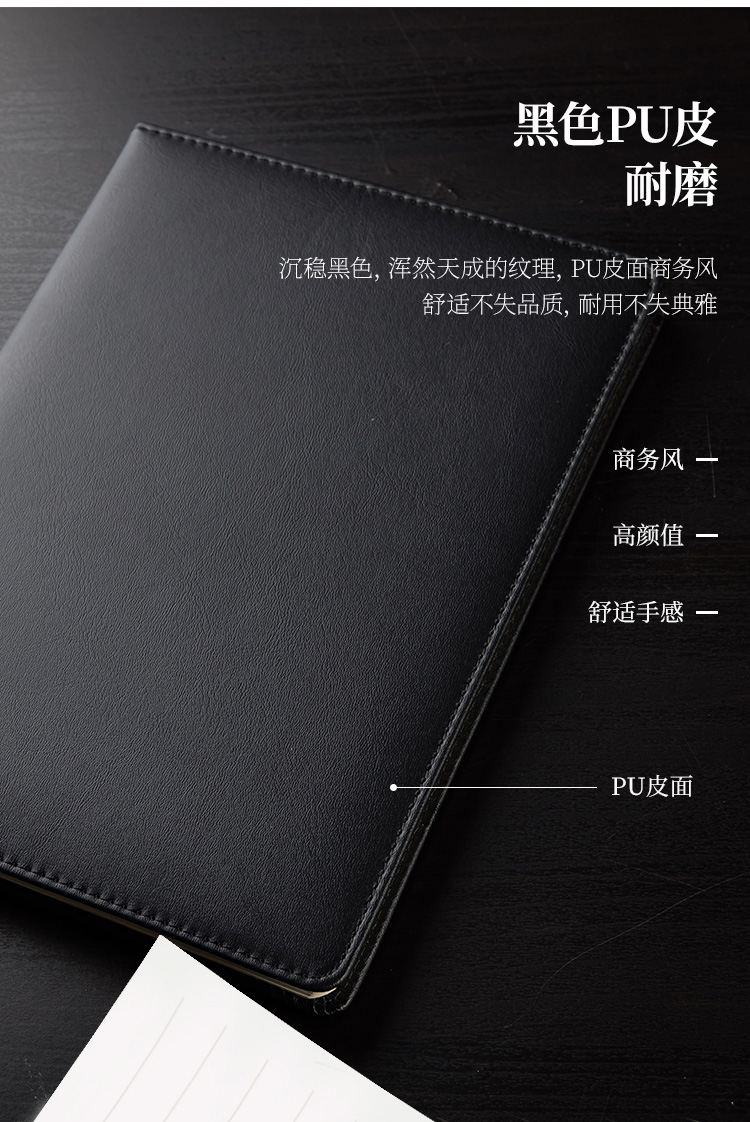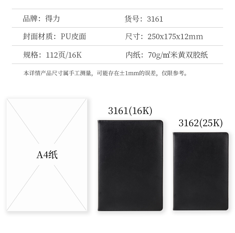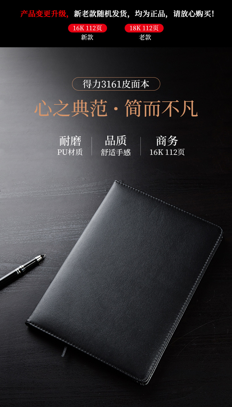 • 商品名稱:得力(deli)16K112張大號商務(wù)皮面本 會議記事本筆記本子 黑色3161