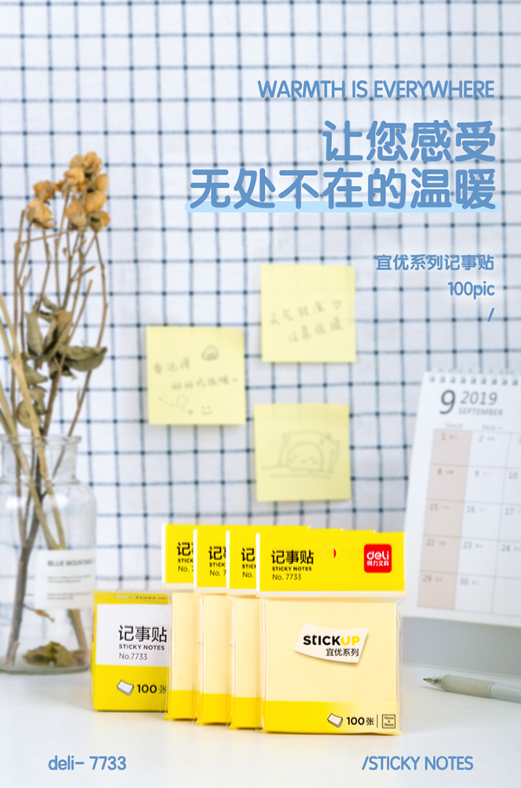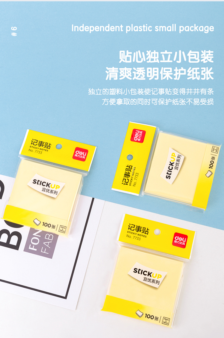 • 商品名稱:得力 (deli) 強黏性便利貼/標簽紙/便簽紙 7733(76mm*76mm)