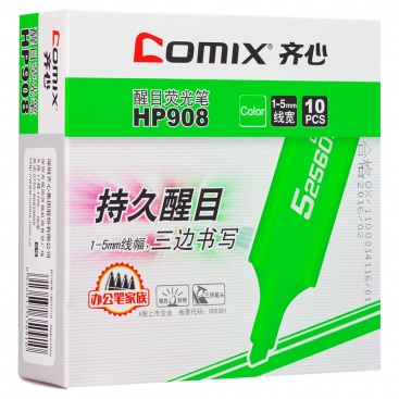 • 齊心(Comix) HP908 持久醒目熒光筆 顏色筆 綠色 10支裝
