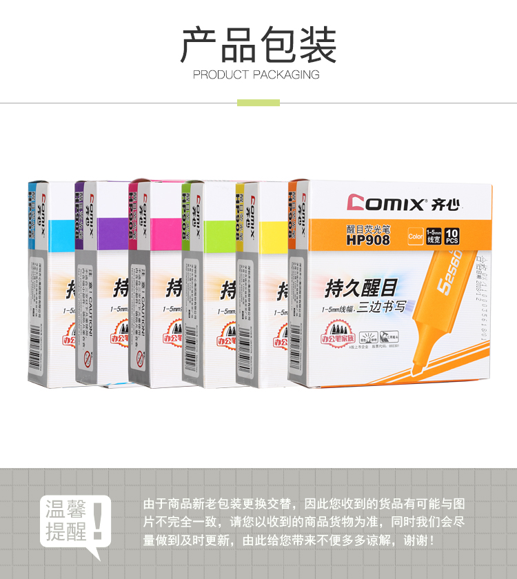 • 商品名稱:齊心(Comix) HP908 持久醒目熒光筆 顏色筆 綠色 10支裝