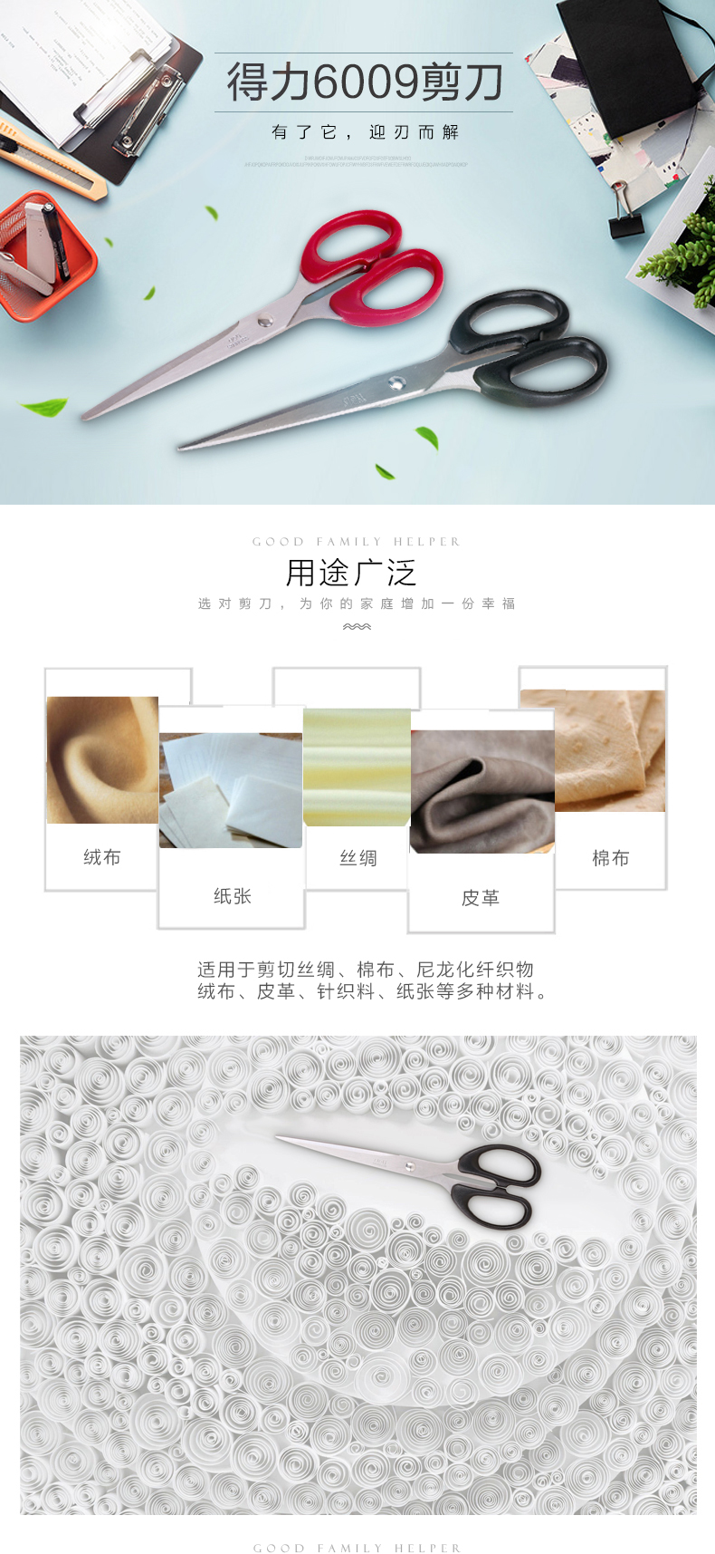 • 商品名稱:得力(deli) 剪刀 辦公剪紙刀 不銹鋼剪刀6001 大號 190mm