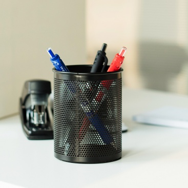 • 得力(deli)密集金屬網(wǎng)紋圓形筆筒 創(chuàng)意桌面收納盒 辦公用品 黑色909