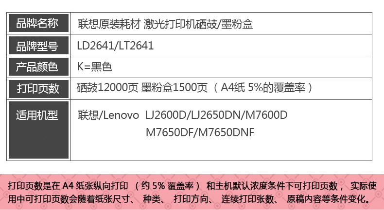 • 商品名稱:聯(lián)想(lenovo)LT2641原裝專用墨粉(適用于LJ2600D 2650DN M7600 M7600D M7650DF M7650DNF打印機)