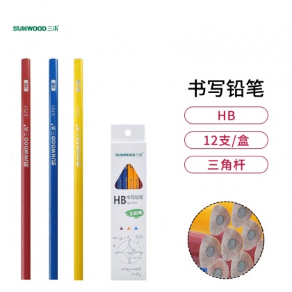• 三木(SUNWOOD) 12支HB彩色漆三角桿鉛筆 新老包裝隨機(jī)發(fā)貨 5701