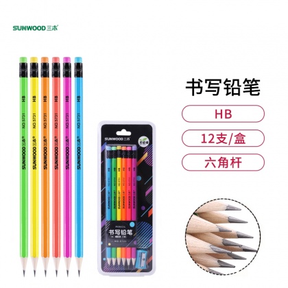 • 商品名稱:三木(SUNWOOD) 12支HB六角彩桿鉛筆帶卷筆刀 5731