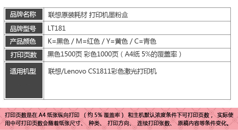 • 商品名稱:聯(lián)想(Lenovo)LT181M品紅色原裝墨粉(適用于CS1811打印機(jī))