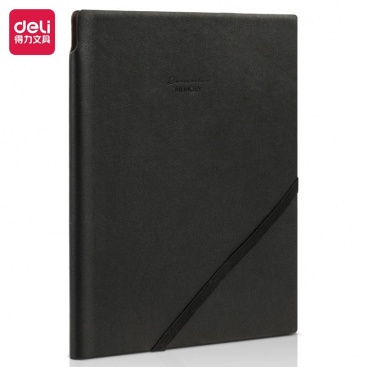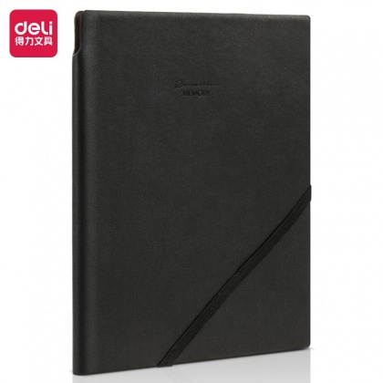 • 商品名稱:得力(deli)25K96張可插筆綁帶皮面本 記事本工作筆記本子文具黑色22215