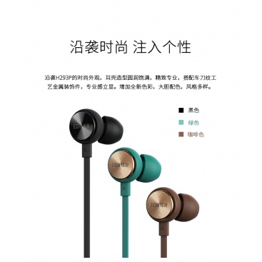 • 漫步者(EDIFIER)H293P Plus 入耳式耳機(jī) 立體聲耳機(jī) 手機(jī)耳塞 黑色/綠色/咖啡色