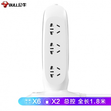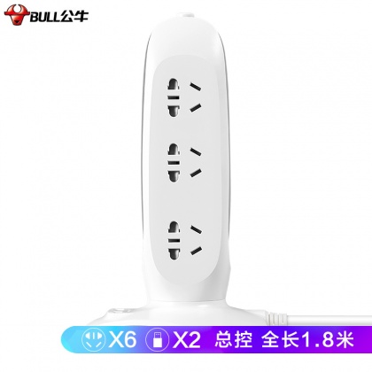 • 商品名稱:公牛(BULL)公牛立式USB插座/插排/插線板/接線板/排插 6位全長1.8米過載保護帶2USB口 GN-V106U