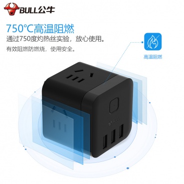 • 商品名稱:公牛(BULL) 無(wú)線魔方USB插座 插線板/插排/排插/接線板/拖線板 3USB接口+3插孔 黑色 GN-U303WH